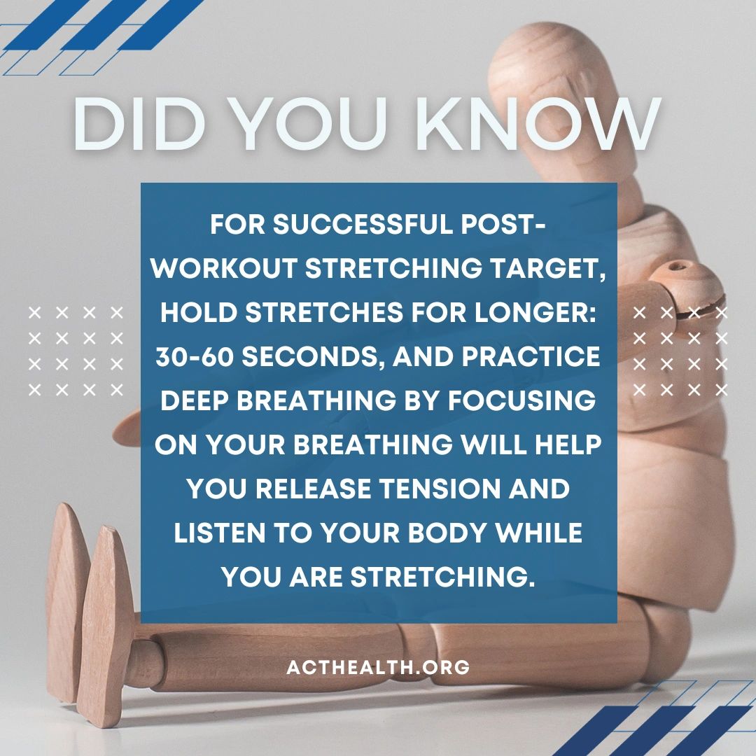 - Hold stretches for longer: 30-60 seconds. The longer stretching time helps delay soreness